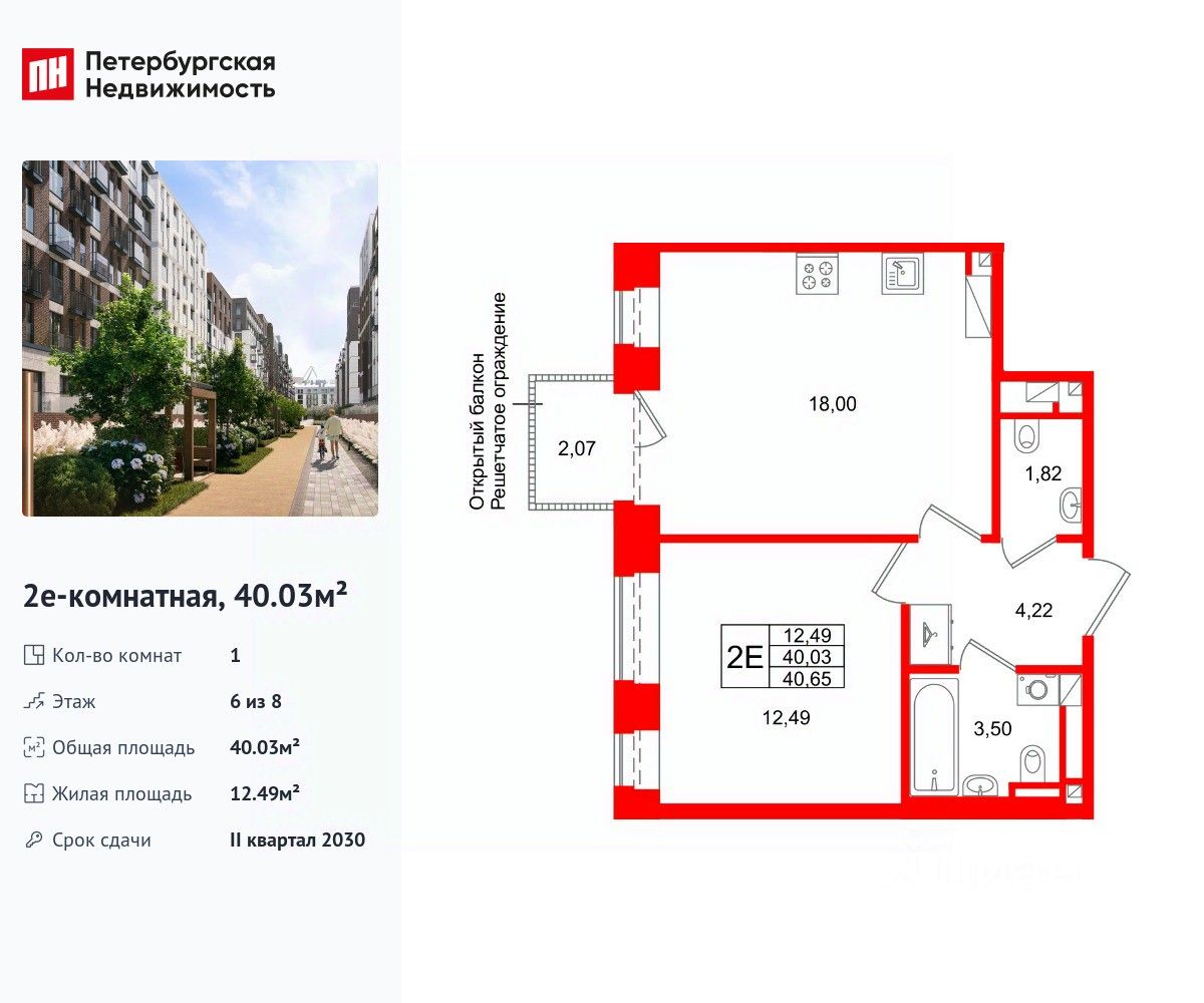 Удобная, классическая, функциональная европланировка, большая кухня-гостиная 18 м², просторная прихожая 4.22 м². Общая площадь квартиры - 40.03 м², жилая 12.49 м², высота потолка 2.7 м.