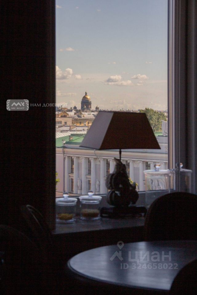 Достоинства квартиры: Высокий этаж и панорамный вид на город. Роскошная гостиная с тремя окнами и водим на Исаакиевский собор. Три полноценные спальни (12, 21 и 25 метров). Отдельная гардеробная комната с окном.