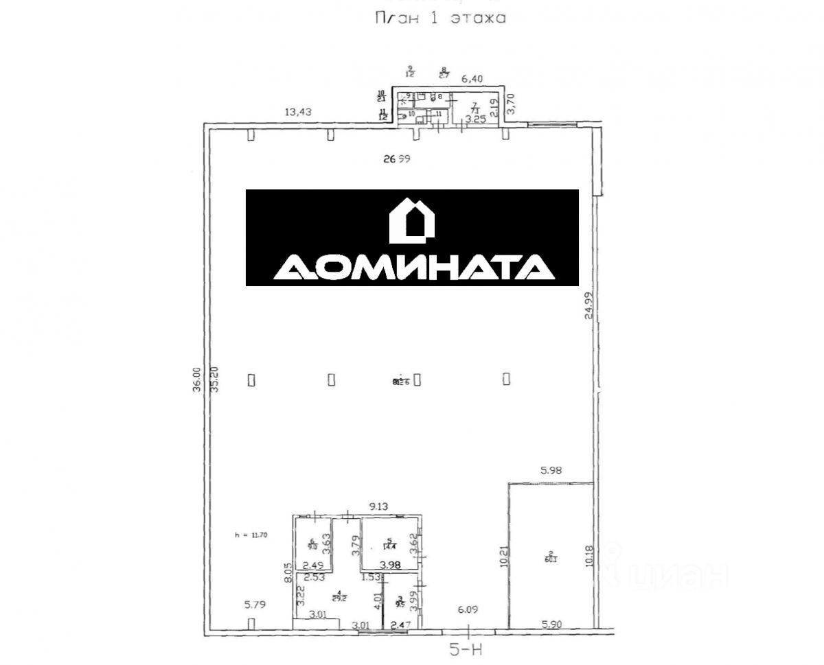- общая площадь 949,5 м2, - высота потолков 11,8 м, - шаг колонн 6х18м, - мощность эл.