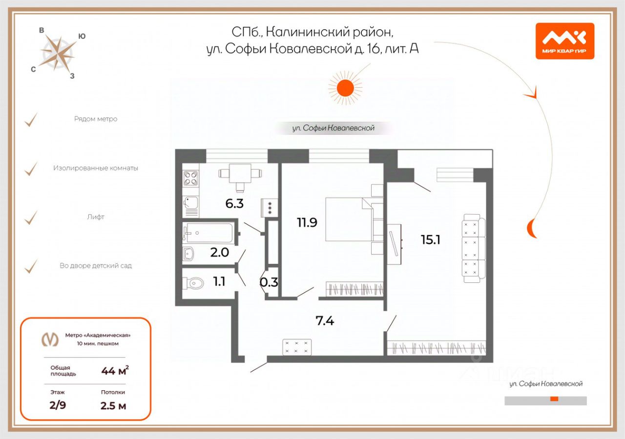 Арт. 127153128 В продаже двухкомнатная квартира 43,7 м.кв. О локации: До метро ''Академическая'' всего 10 минут пешком. Развитая инфраструктура представлена большим количеством магазинов, кафе,салонов красоты и тд. В пешей доступности школы и детский сад во дворе.