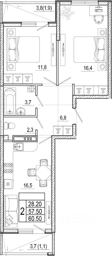 Общая площадь60,5 м2
