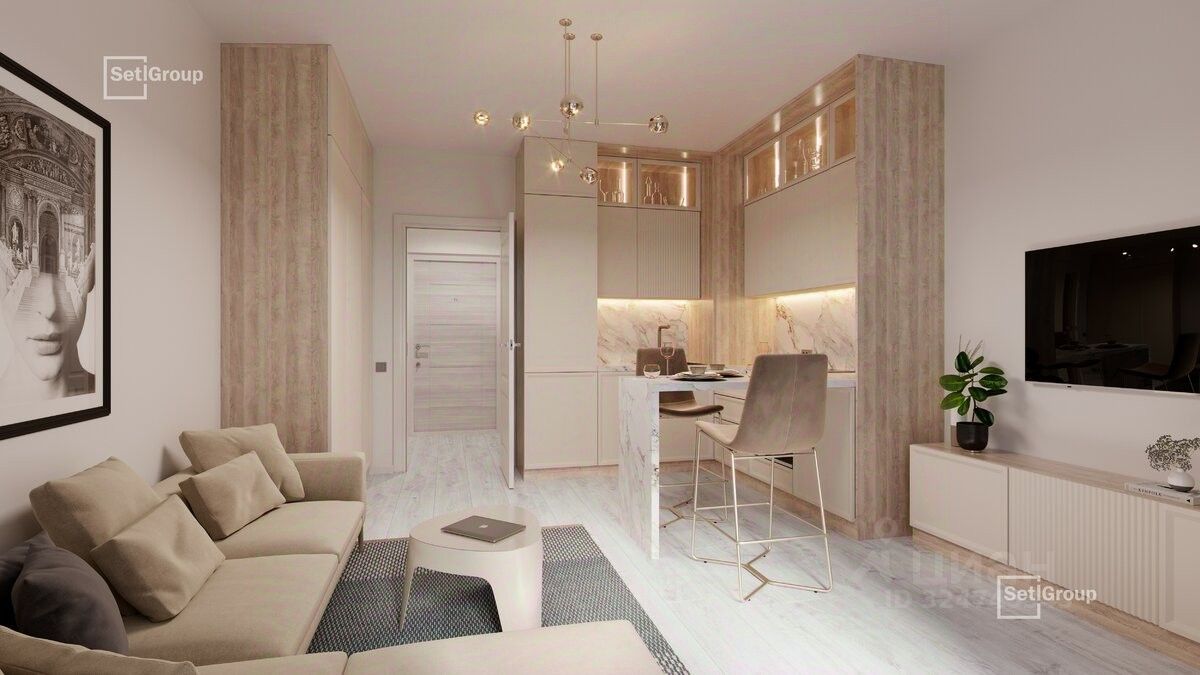 Удобная, классическая, функциональная европланировка, большая кухня-гостиная 17.89 м², вместительная прихожая 3.82 м². Общая площадь квартиры - 38.26 м², жилая 11.4 м², высота потолка 2.7 м.