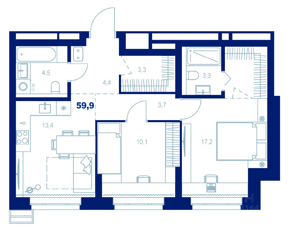 Здесь можно создать отдельную спальню, кабинет или просторную гостиную — планировка легко адаптируется под ваш стиль жизни.