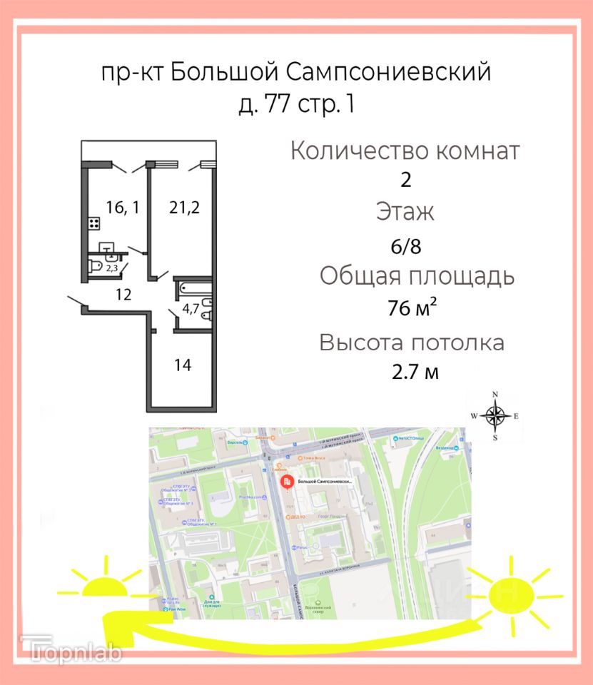 продам 2-к, Большой Сампсониевский проспект, 7720 600 000 ₽
