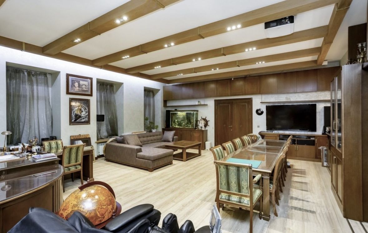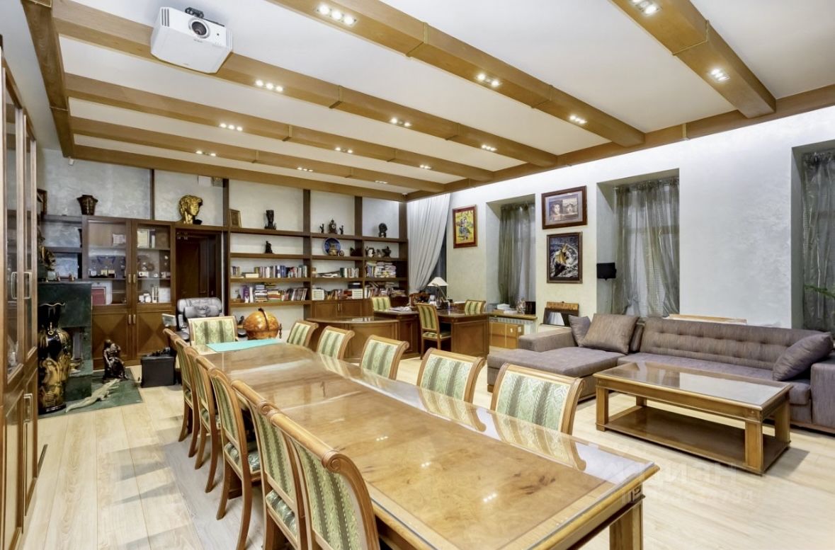 Сердце квартиры элитарный кабинет: Просторный кабинет, который также служит залом для совещаний, создает идеальную атмосферу для деловых встреч. Натуральные фактуры дерева и текстиля, картины на стенах, современное оборудование (видеопроектор, экран, автоматические замки, системы вентиляции и кондиционирования) делают его функциональным и стильным. Действующий камин из искусственного мрамора добавляет уюта.