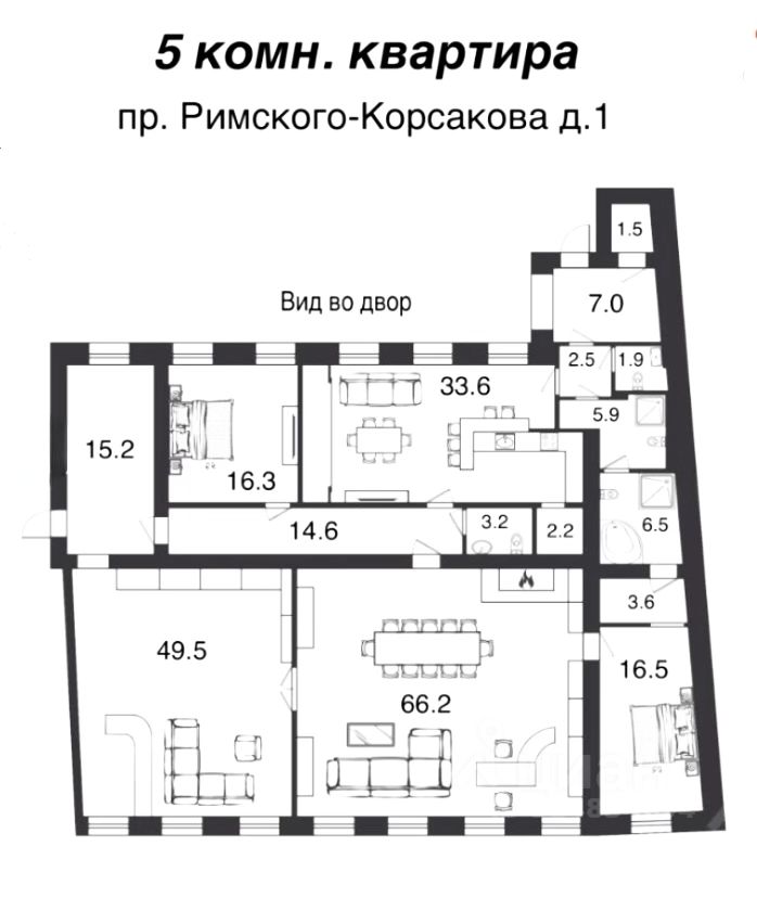 Ключевые преимущества: * Исторический дом, расположенный напротив живописного Юсуповского сада. * Дизайнерский ремонт премиум-класса.