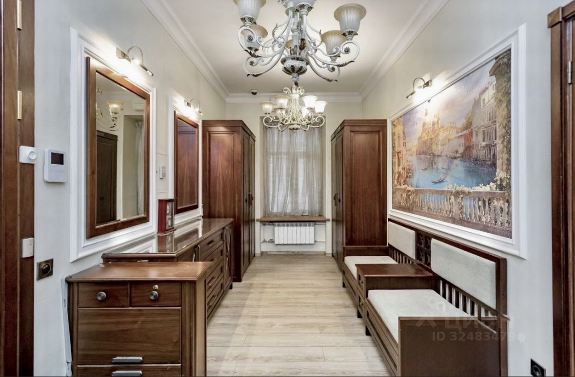 Особенности интерьера и оснащения: * Эксклюзивность: Ремонт выполнен по индивидуальному дизайн-проекту с применением лучших материалов. Мебель от поставщика Константиновского Дворца подчеркивает высокий статус объекта. * Роскошная отделка: Стены украшены венецианской штукатуркой и изысканными картинами. На полу дубовая паркетная доска и итальянская плитка, оснащенная системой подогрева. Высота потолков 3,5 метра. * Элитные детали: Окна с энергосберегающими стеклопакетами, двери из массива ореха, изысканные итальянские шторы.