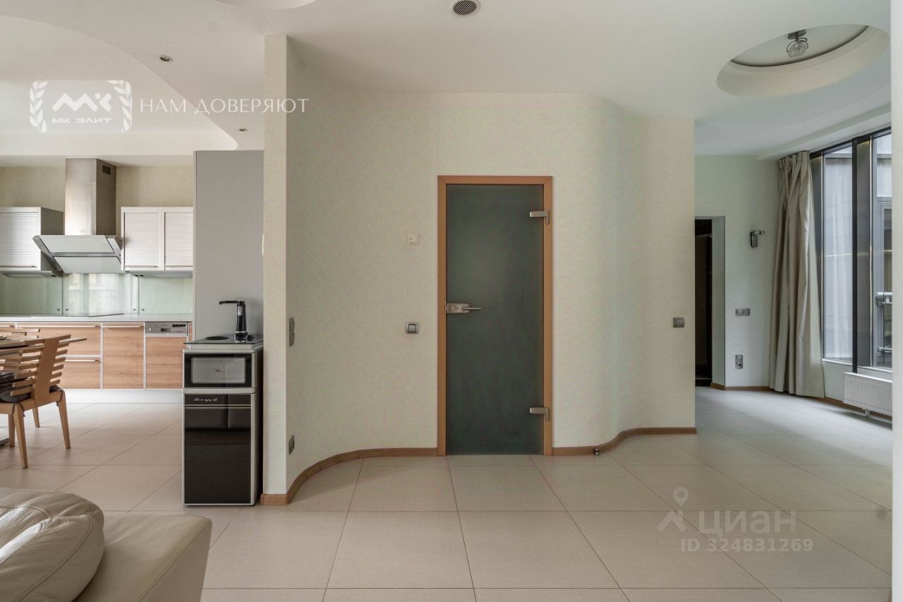 Планировка гармонична и функциональна. Сглаженные линии пространства отсылают к естественным для человеческой природы округлым формам. Каждый квадратный метр использован с умом здесь большая прихожая, отдельная гардеробная и несколько зон хранения. Стеклопакеты из древесины особых пород. Кухня оборудована премиальной техникой Neff, стиральная машина Miele. Сантехника европейских брендов Damixa, Hansgrohe, Jacob Delafon. За комфортный температурный режим в квартире отвечает система кондиционирования и приточно-вытяжной вентиляции.