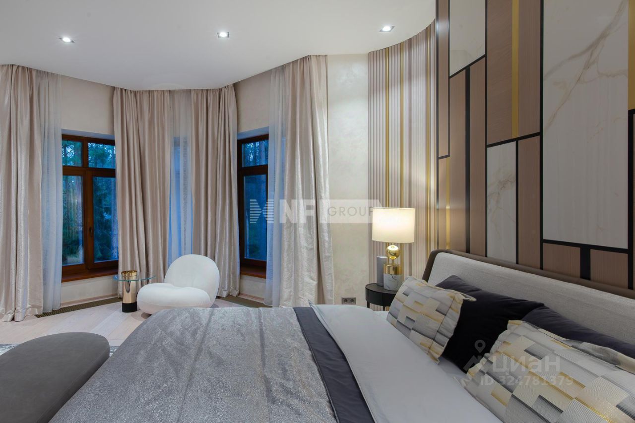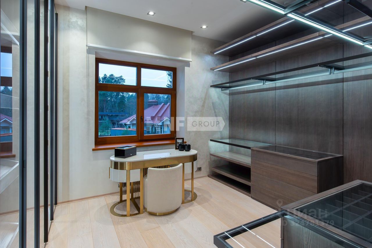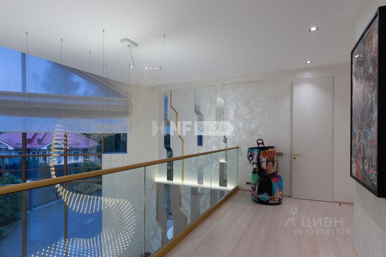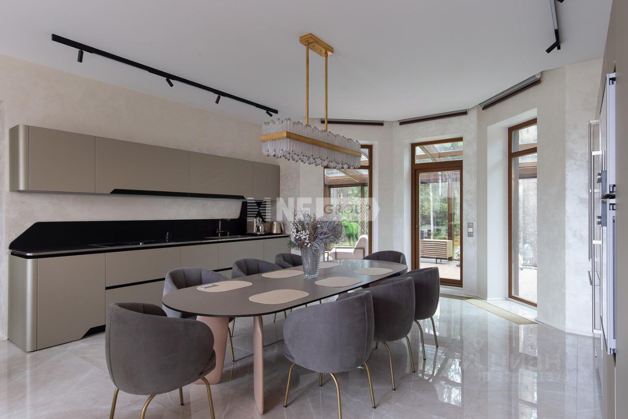 Центром дома является впечатляющая гостиная со вторым светом и эксклюзивным наполнением от Pierre Augustine Rose, а также камином Bordelet. Рядом располагается столовая с отдельной зоной кухни от премиального итальянского бренда Snaidero, оснащенной бытовой техникой Gaggenau. Продуманная планировка включает мастер-спальню с мебелью Minotti, две детских и одну гостевую спальни, кабинет, три ванных комнаты (AXOR, Porcelanosa, Cielo), санузел на первом этаже, гардеробные и просторную утепленную террасу — всё для ощущения максимального комфорта и уюта.