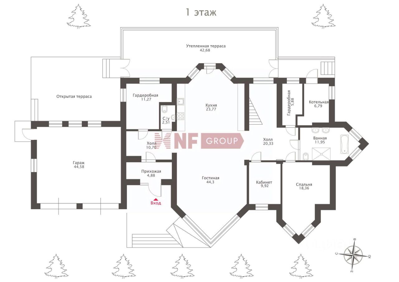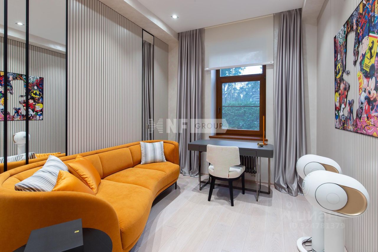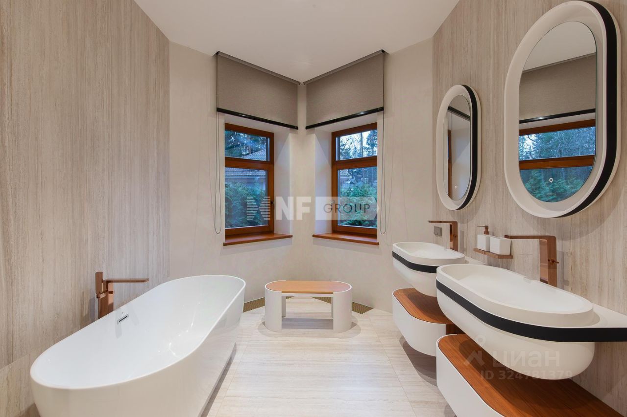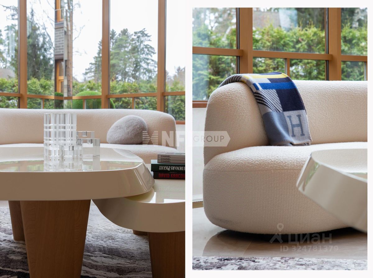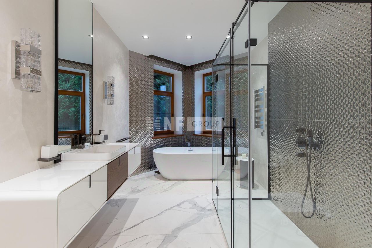 Центром дома является впечатляющая гостиная со вторым светом и эксклюзивным наполнением от Pierre Augustine Rose, а также камином Bordelet. Рядом располагается столовая с отдельной зоной кухни от премиального итальянского бренда Snaidero, оснащенной бытовой техникой Gaggenau. Продуманная планировка включает мастер-спальню с мебелью Minotti, две детских и одну гостевую спальни, кабинет, три ванных комнаты (AXOR, Porcelanosa, Cielo), санузел на первом этаже, гардеробные и просторную утепленную террасу — всё для ощущения максимального комфорта и уюта.