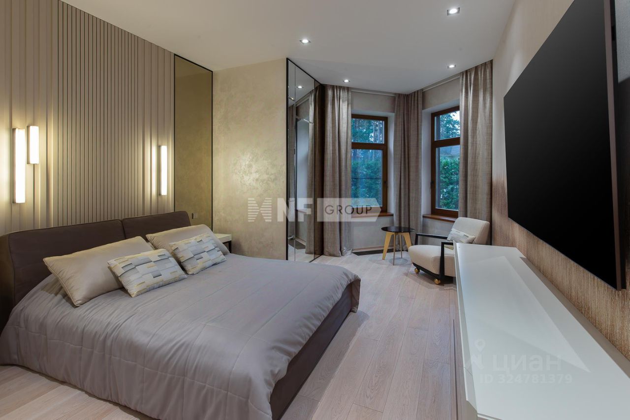 Лот: 9922666. Современный, элегантный и просторный особняк, выполнен по индивидуальному проекту. Расположен в сердце Курортного района Санкт-Петербурга в элитном КП ''Мои Пенаты''. Общая площадь дома - 410 кв.м., включая отапливаемый гараж на два автомобиля.