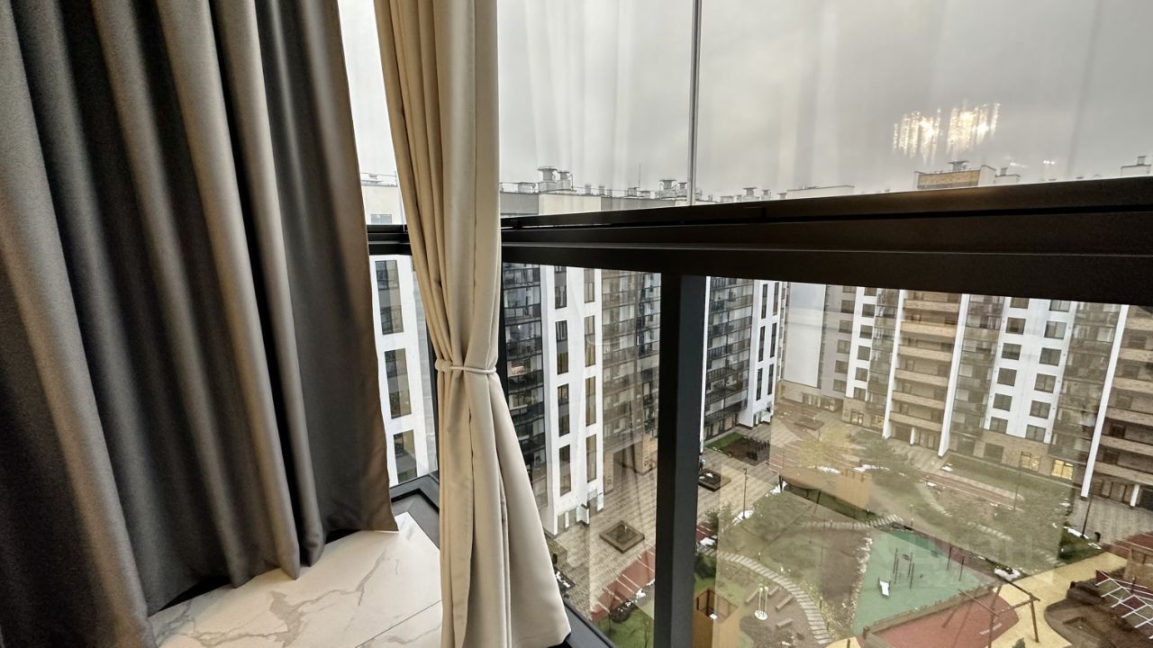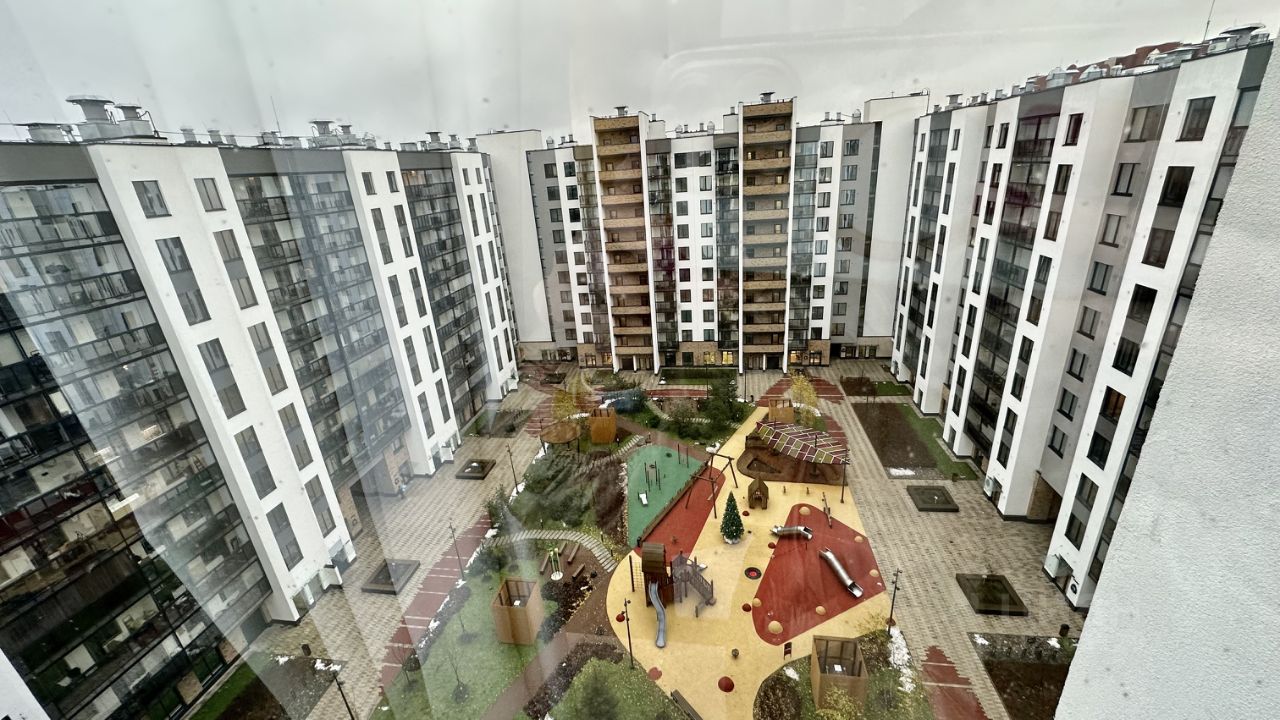 На последнем этаже с видом на скалодром и парк ''Сосновка'' (основная спальня) и детскую площадку (кухня, маленькая спальня). Безопасная детская площадка в закрытом дворе. На всей территории установлены камеры, охрана. Безключевой доступ в парадную.