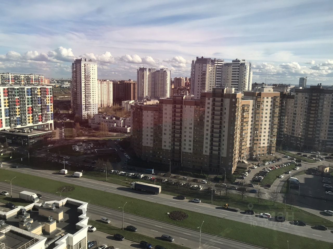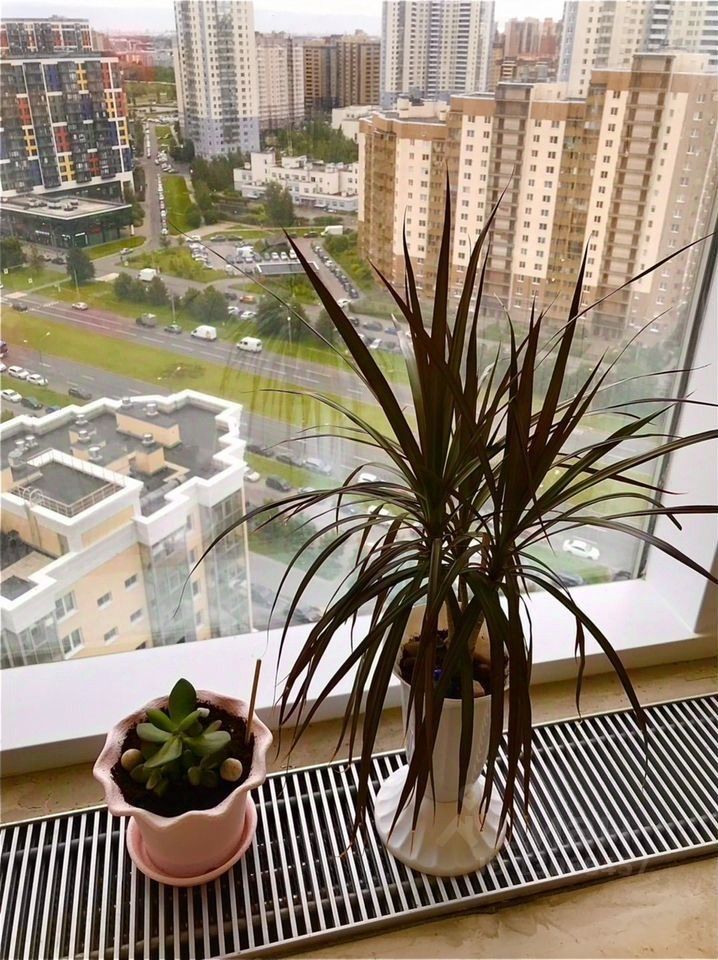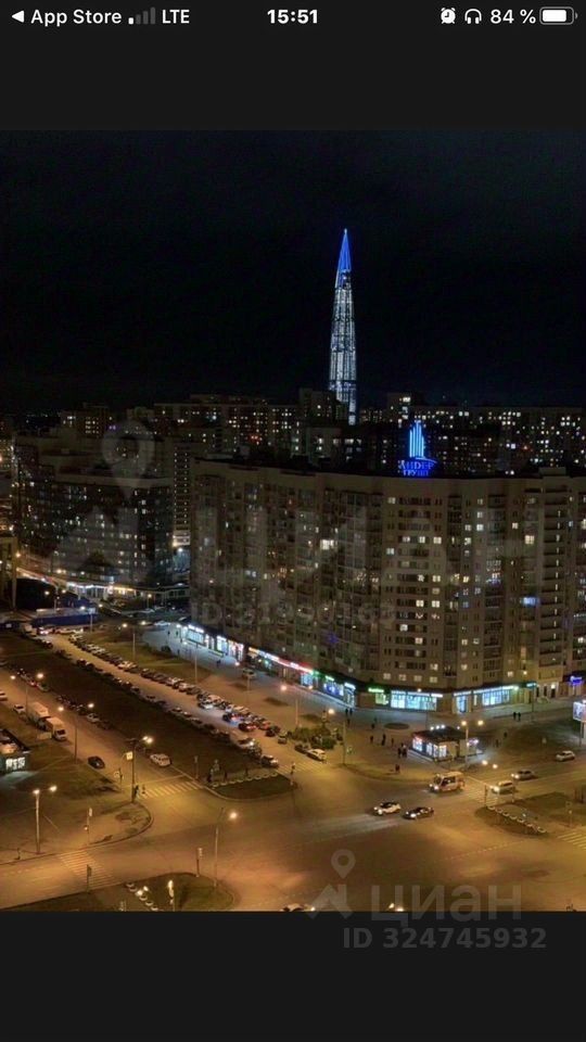 Квартира расположена на 19 этаже, имеет прекрасные видовые характеристики. Окна выходят на южную сторону и пр. Оптиков.