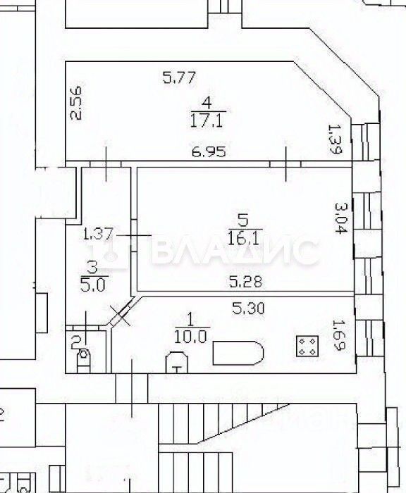 Жилая площадь: 33,2 м² Кухня: 10 м²