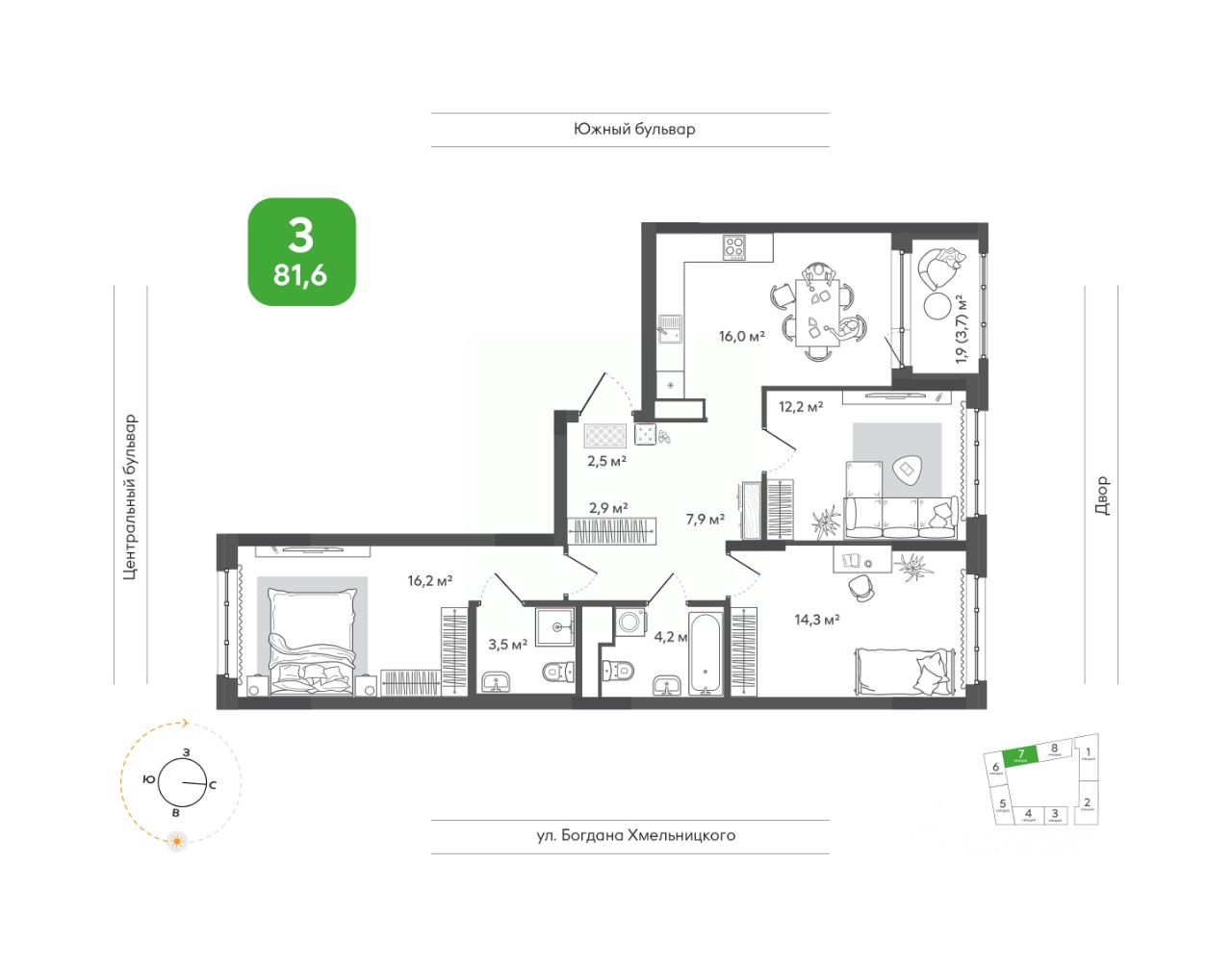 продам 3-к, Богдана Хмельницкого, 148 стр.9 886 272 ₽