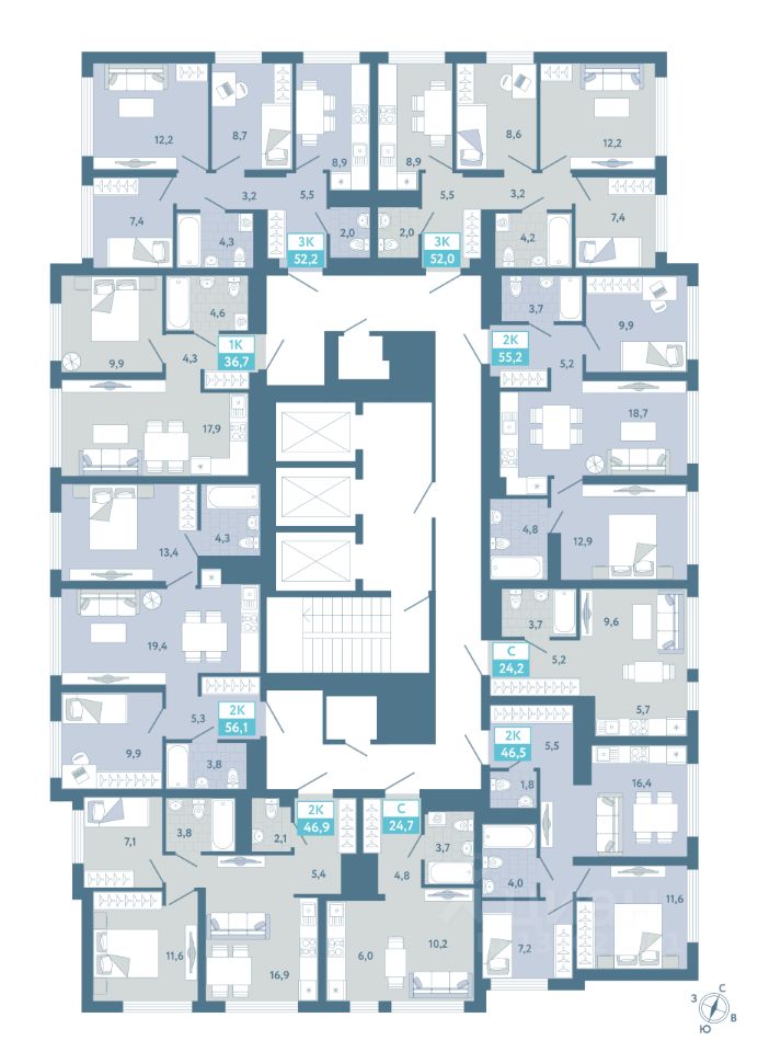 Продаётся квартира площадью 46.9 м2 в жилом комплексе ''Айрис''. Квартира находится на 25 этаже, жилая площадь квартиры 18.7 м2, площадь просторной кухни — 16.9 м2. Среди особенностей планировки — изолированные комнаты с окнами на одну сторону, 1 совмещённый санузел.