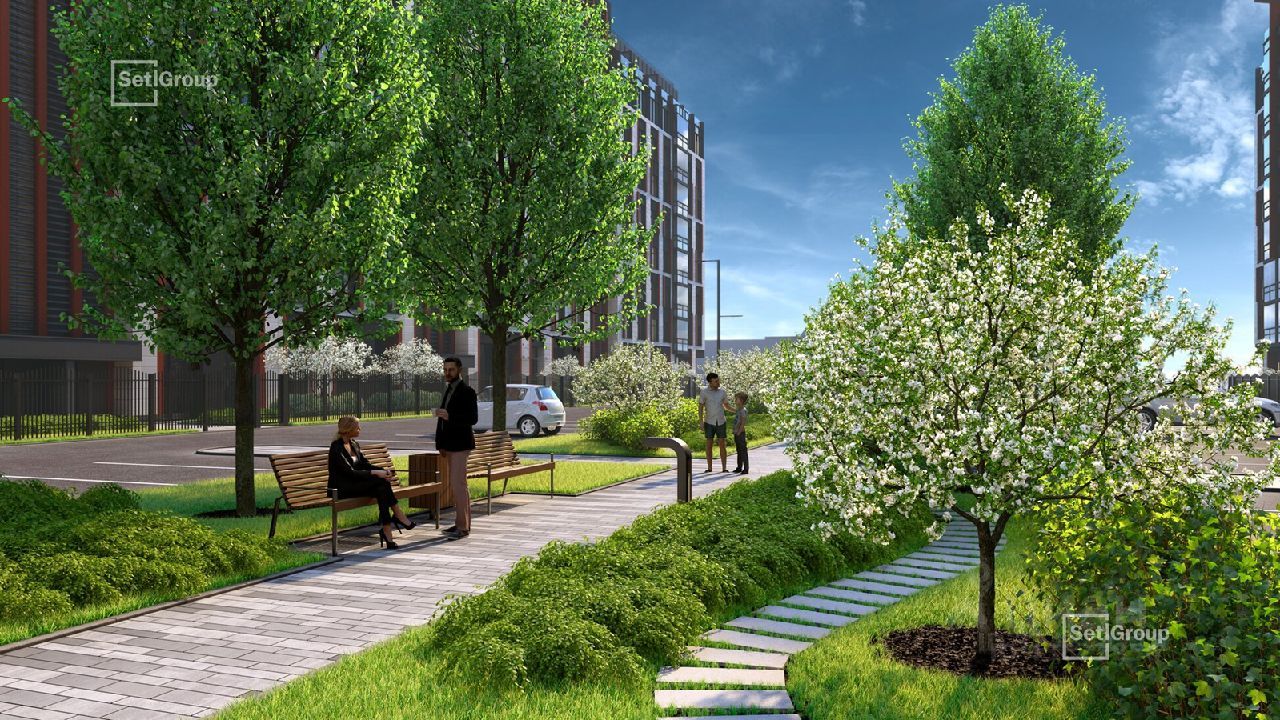Доступ на территорию осуществляется через одну из трех централ. входных групп с ресепшн, круглосуточной охраной. Придомовая территория закрыта от посторонних. В каждом дворе установлены игровые площадки, беседки с навесом от непогоды и места для комфортного отдыха. Холлы каждого корпуса оформлены по индивиду. проекту. Особое внимание уделено контролю за безопасностью. Помимо централ. входных групп, перед входом в парадную установлены видеодомофоны. Для авто доступен подземный паркинг. Также организован наземный паркинг с шлагбаумом и гостевой.