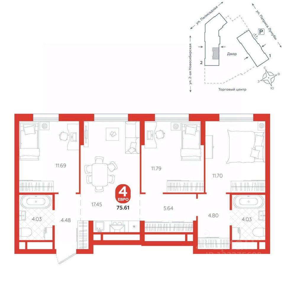 Квартира находится в ЖК ''Бодровский'' от федерального застройщика ''Паритет Девелопмент''. Это жилой комплекс комфорт-класса с современной архитектурой, расположенный в Екатеринбурге в районе улиц Патриса Лумумбы и 2-й Новосибирской. Добраться от него до центра города можно всего за 25 минут, дорога до ЕКАДа займет 12 минут. В окружении жилого комплекса есть шесть детских садов, пять школ, три больших парка, пять спорткомплексов, в том числе курортный комплекс Уктус. Квартал состоит из двух секций переменной этажности (от 14 до 24 этажей) и подземного паркинга с кладовыми, к которым можно будет спуститься на лифте. На первых этажах предусмотрены коммерческие помещения: жители смогут сделать маникюр, воспользоваться услугами ателье, выпить кофе с круассаном, не покидая своего района. Ввод в эксплуатацию в III кв. 2027 года. Территория комплекса огорожена от машин и посторонних людей. Озеленение с многолетними растениями и деревьями создает ощущение близости к природе. Двор наполнен всем необходимым: песочницы и качели для самых маленьких, интерактивная башня для детей постарше, воркаут-зона и места для отдыха. На всей территории реализована безбарьерная среда. В парадных выполнен авторский ремонт. За счет панорамного остекления и 4-метровых потолков там всегда много естественного света. Предусмотрены колясочные с местами для хранения спортинвентаря и креплениями для велосипедов. В проекте представлены студии, классические одно- и двухкомнатные варианты, а также двух-, трех- и четырехкомнатные квартиры в евроформате площадью от 25,32 до 76,65. Все планировки — функциональные и подходящие новоселам как с детьми, так и без них. Есть варианты с лоджиями, где можно организовать дополнительное пространство для отдыха, спорта или работы, а еще квартиры с мастер-спальней, гардеробной, двумя санузлами. В каждой предусмотрена вытяжная вентиляция с естественным побуждением, счетчики с телеметрией и корзины для кондиционеров. Характеристики квартиры: этаж - 12 количество комнат - 4 номер помещения - 268 площадь квартиры - 75,61 кв.м Чтобы сэкономить время и деньги, можно приобрести квартиру сразу с ремонтом от застройщика. На выбор 3 конфигурации: базовый, с кухонным гарнитуром, с кухонным гарнитуром и другой мебелью - в светлом и темном оттенках. Ремонт можно включить в ипотеку.