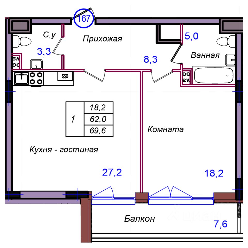 Общая площадь69,6 м2