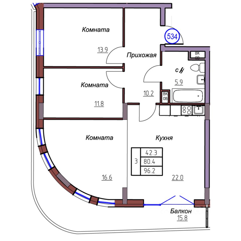 Общая площадь96,2 м2