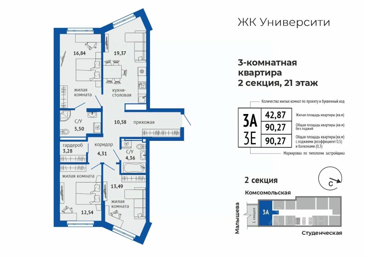 продам 3-к, Малышева, 137а15 950 709 ₽