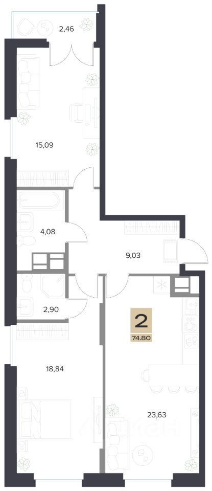 Общая площадь74,8 м2