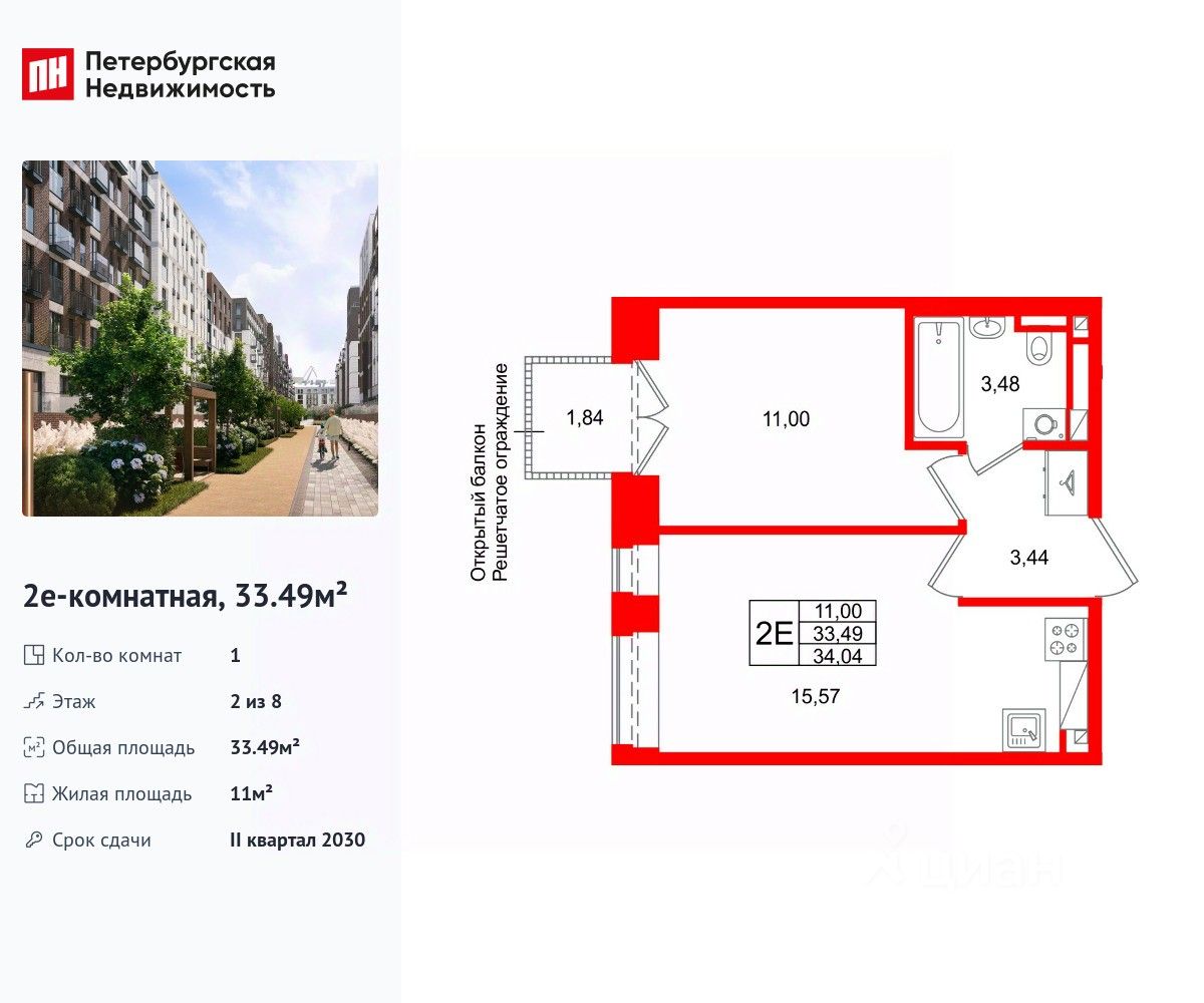 Удобная, классическая, функциональная европланировка, большая кухня-гостиная 15.57 м², вместительная прихожая 3.44 м². Общая площадь квартиры - 33.49 м², жилая 11 м², высота потолка 2.7 м.