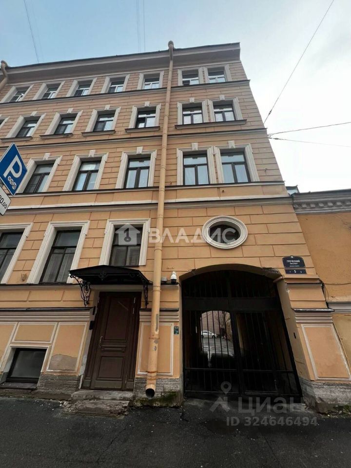 Квартира-студия на первом этаже пятиэтажного дома 1892 года постройки. Общая площадь — 10 кв. м, жилая — 5 кв. м, кухня — 3 кв. м. Окна выходят на улицу.