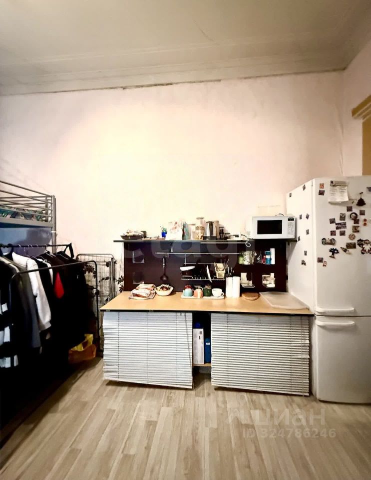 Комната находится в восьмикомнатной квартире, окна выходят во двор, а не на шумную улицу. Все общественные зоны поддерживаются в чистоте. В квартире раздельный санузел, что является большим преимуществом для коммунальной квартиры.