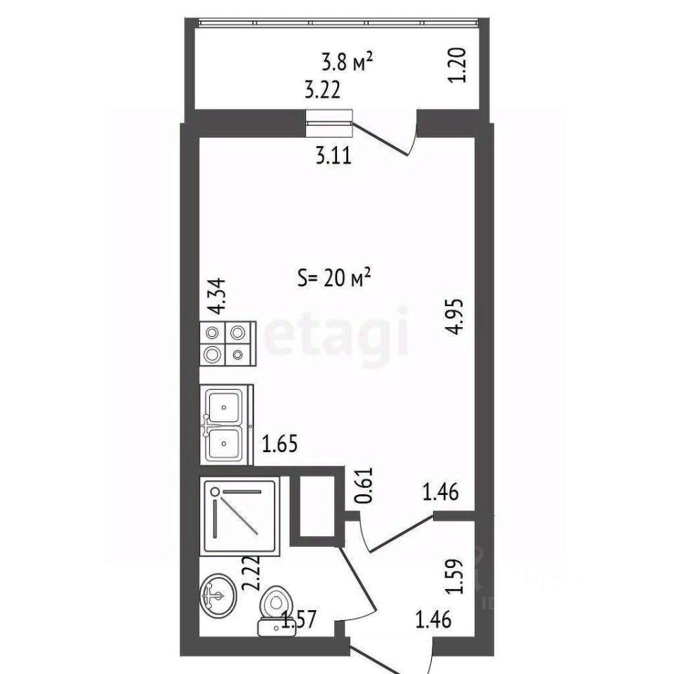 Площадь: 20 м² + балкон 3,8 м² Высота потолков: 2,7 м (ощущение простора!) Полная собственность, без обременений. Сделка прозрачная и быстрая.