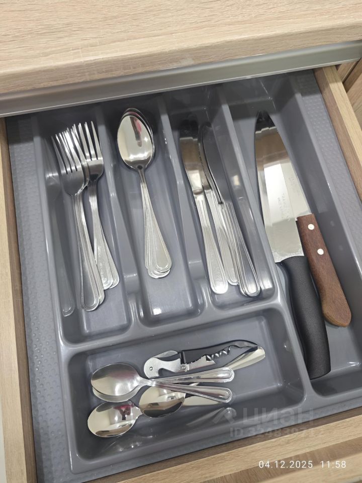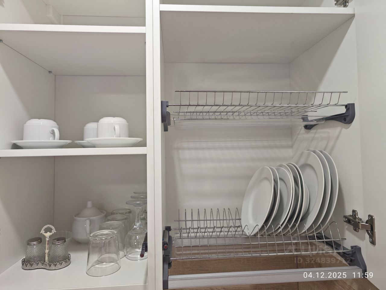 В студии оборудована зона кухни, имеется вся необходимая посуда, микроволновая печь, мини-холодильник, варочная панель.