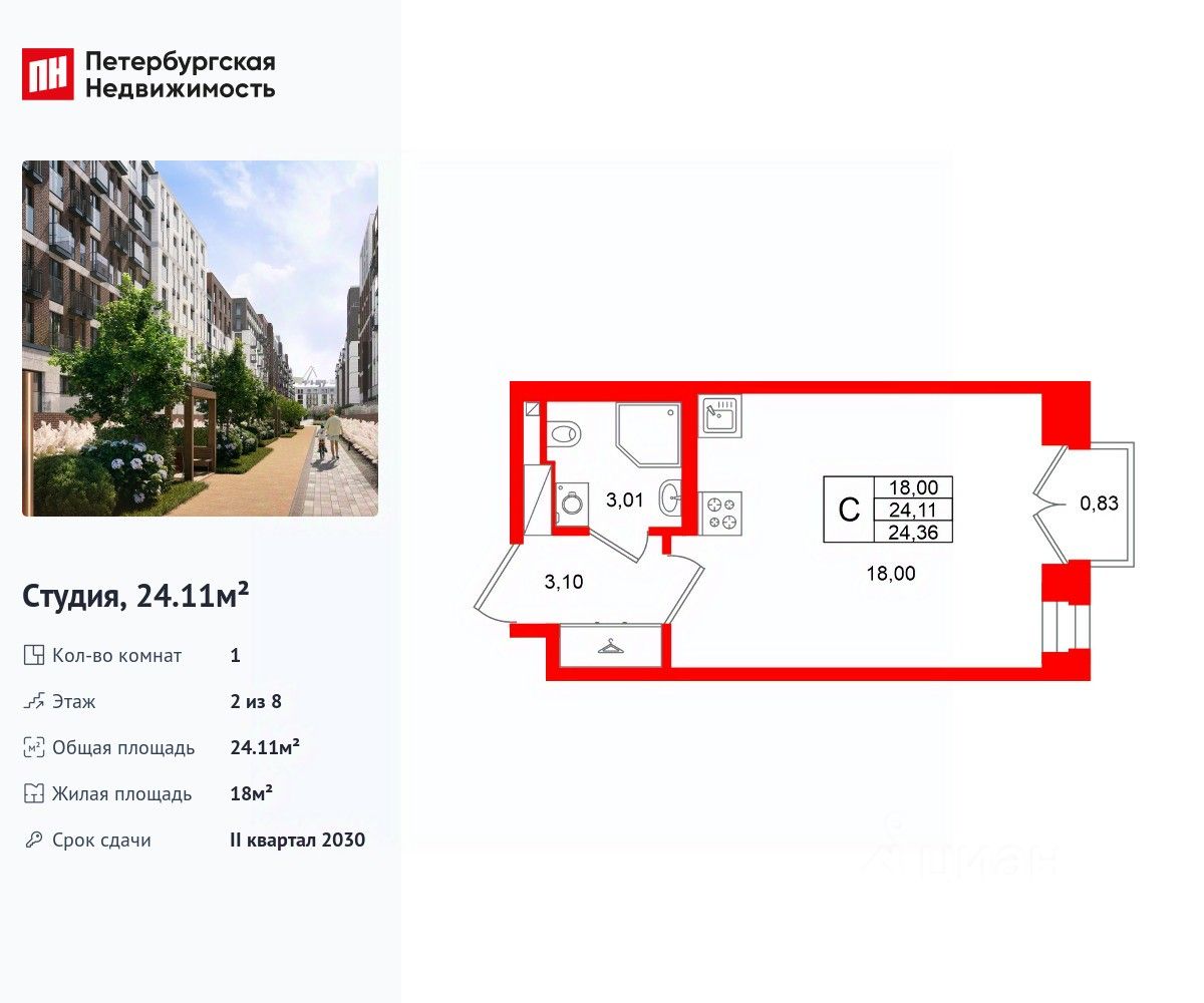 Удобная, классическая, функциональная европланировка, вместительная прихожая 3.1 м². Общая площадь студии - 24.11 м², жилая 18 м², высота потолка 2.7 м.