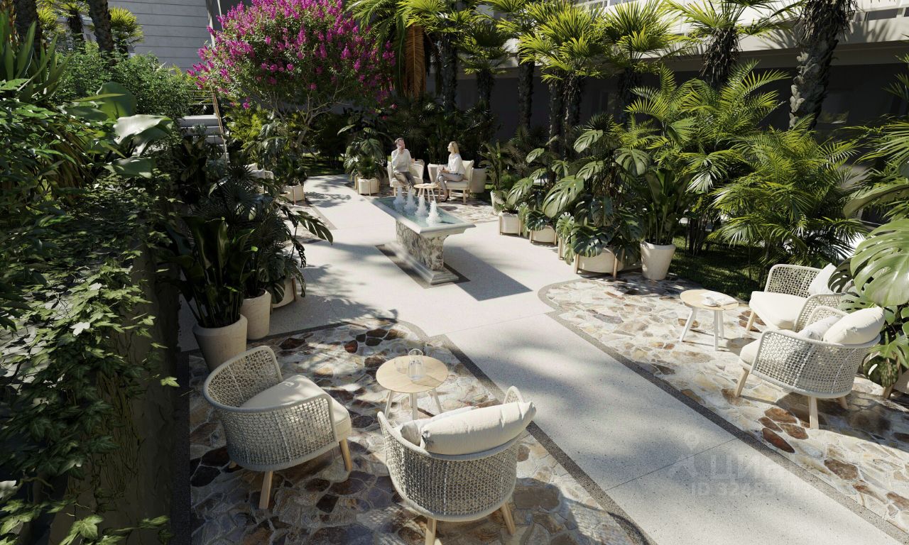 Комплекс находится на закрытой парковой территории площадью 4 га, утопает в зелени тропических и субтропических растений. Уютные зеленые дворики в итальянском и японском стиле каждая деталь призвана подчеркнуть связь архитектуры с окружающим ландшафтом, где проект дизайна территории разрабатывали Arteza ведущая ландшафтная компания России.