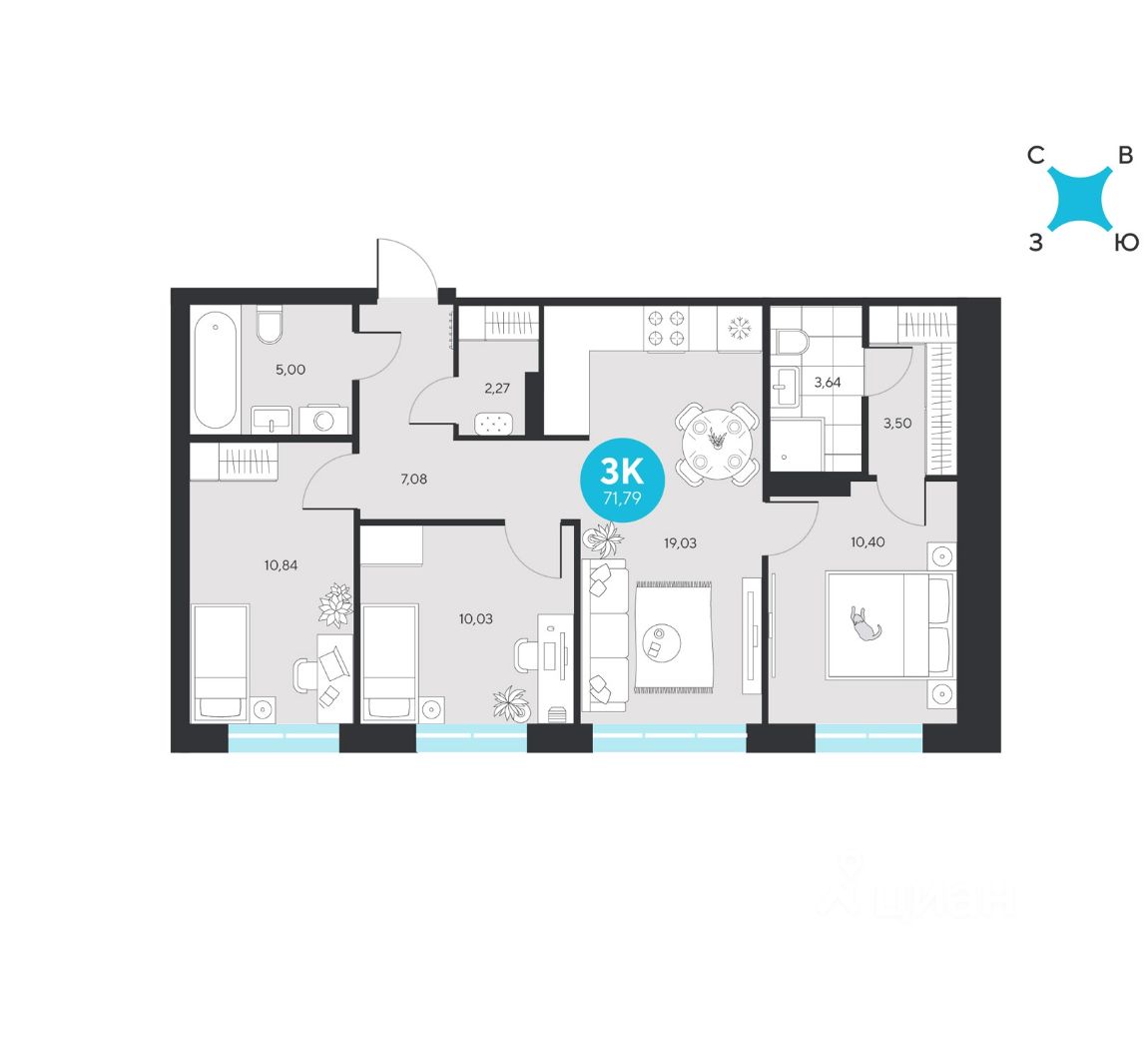 Продаётся квартира площадью 71.79 м2 в жилом комплексе ''Эхо леса''. Квартира находится на 2 этаже, жилая площадь квартиры 31.27 м2, площадь просторной кухни — м2. Среди особенностей планировки — изолированные комнаты с окнами на одну сторону, 1 совмещённый санузел.
