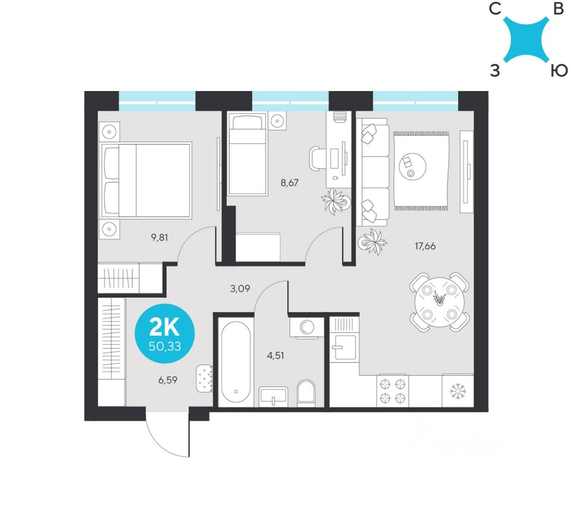 Продаётся квартира площадью 50.33 м2 в жилом комплексе ''Эхо леса''. Квартира находится на 15 этаже, жилая площадь квартиры 18.48 м2, площадь просторной кухни — 17.66 м2. Среди особенностей планировки — изолированные комнаты с окнами на одну сторону, 1 совмещённый санузел.