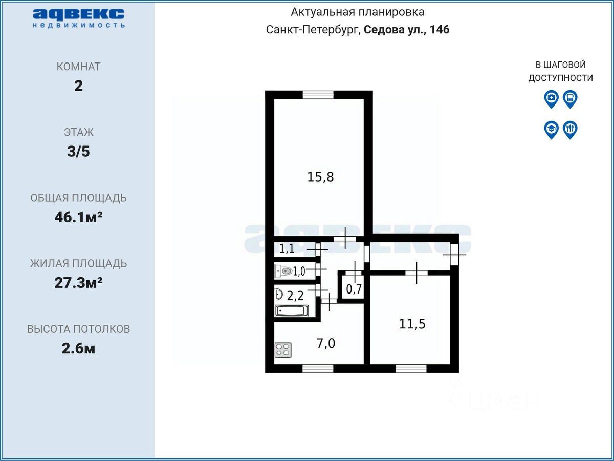 Отличное предложение для тех, кто ищет квартиру ''для себя''! Двухсторонняя 2-комнатная квартира в зеленом районе. Функциональная планировка. Изолированные комнаты 15,8 кв.м. + 11,5 кв.м. Кухня 7,0 кв.м. 2 вместительные кладовки + антресоль. Раздельный санузел. Увеличенная высота потолка 2.6 м. Окна в зеленый двор. Комфортный 3 этаж. ЗАПАД-ВОСТОК. Хорошие соседи. Дом расположен между ст. метро Ломоносовская и ст. метро Пролетарская, до которых можно дойти пешком за 15 мин. Очень удобный благоустроенный район = Рядом все необходимые магазины. И конечно рядом замечательный парк Куракина дача и Нева. Собственность более 5 лет. В квартире никто не зарегистрирован! Прямая продажа! Первая продажа! Не единственное жилье у продавца = безопасность сделки для покупателя!
