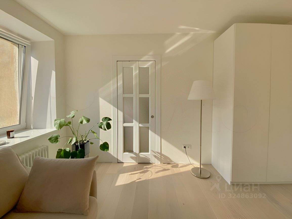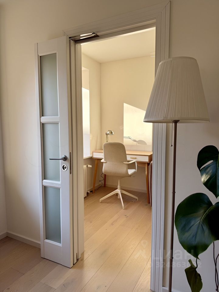 Оснащение и интерьер: — дизайн, отмеченный в номинации divan. Ru. — сантехника ampm и Gustavsberg. — мебель SK Design, La Redoute. — кухня Ikea со встроенной техникой (посудомоечная машина, варочная панель, духовой шкаф, вытяжка, холодильник). — дизайнерские светильники, деревянный комод, кресло, диван. — телевизор, интернет-модем, пылесос Dyson. — пол — дубовый паркет (инженерная доска). — итальянская раздвижная дверь в гостиной.