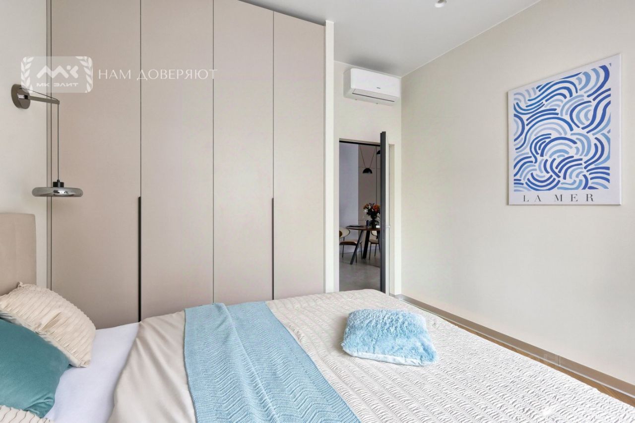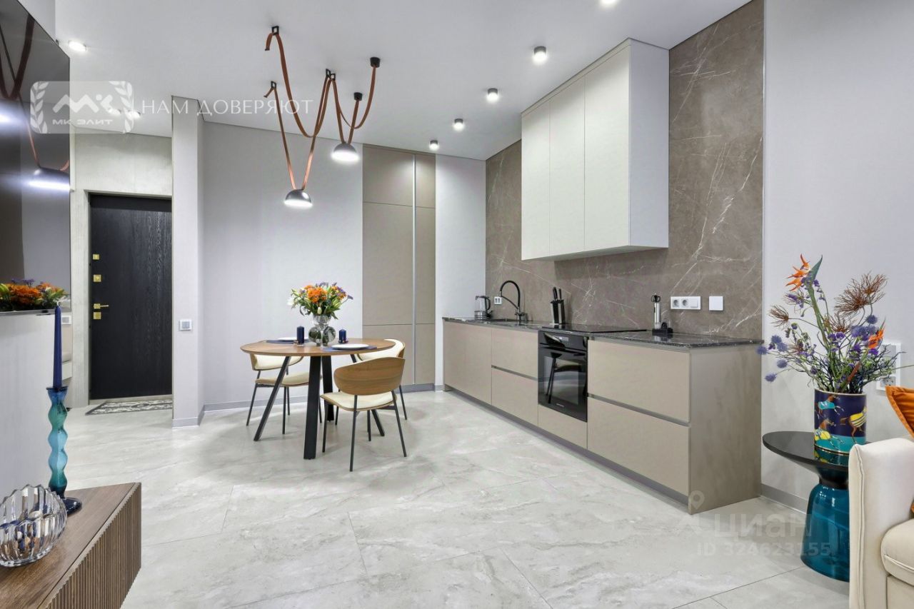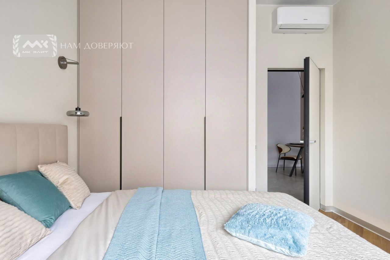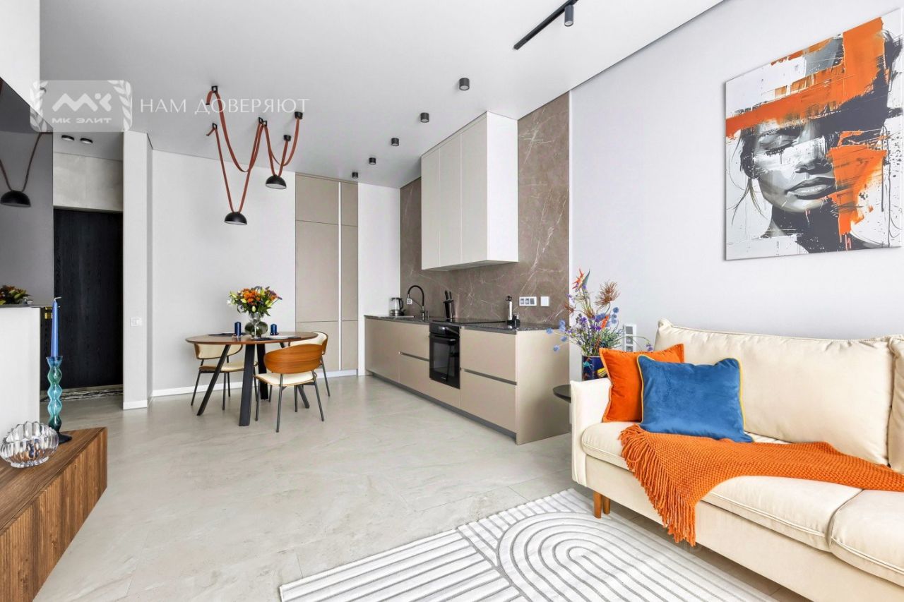 В квартире только что закончен дизайнерский ремонт высококачественными материалами. Панорамное остекление наполняет квартиру светом . Большие окна смотрят на променад и воду. Спальня 11,4 кв.м . Просторная кухня-гостиная.