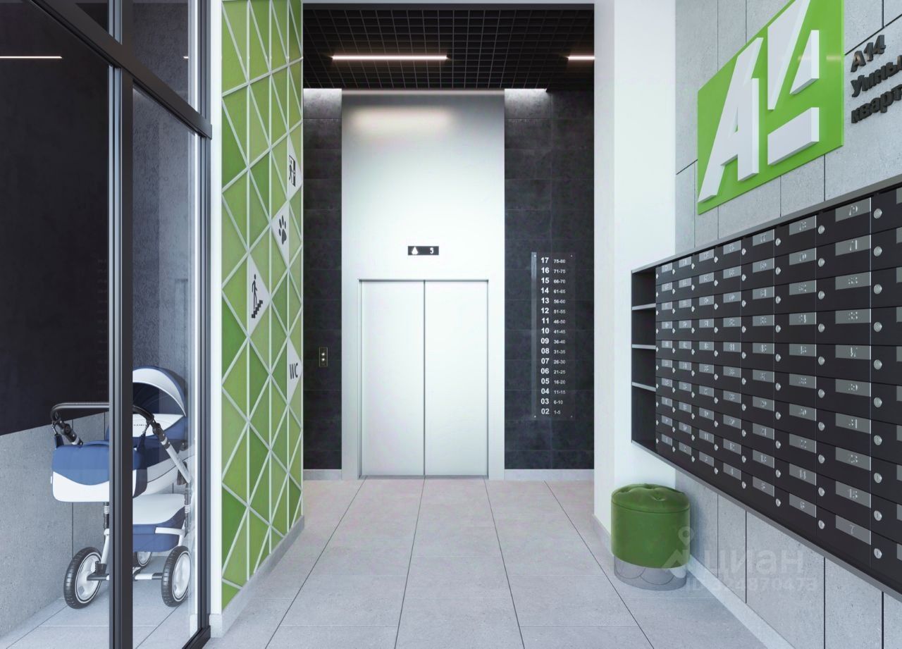 На первых этажах размещаем просторные колясочные. Вы сможете оставить коляску, велосипед или электросамокат на первом этаже, не поднимая их до своей квартиры, и они не будут занимать место в вашей прихожей или кладовке. В колясочных предусмотрены поддоны для мытья колес велосипедов и детских колясок, а также лап ваших домашних питомцев. Перед входами в подъезды предусмотрены велопарковки. Из окон А14 будут открываться замечательные виды на пойму реки Позимь, лес микрорайона ''Ракетный''.