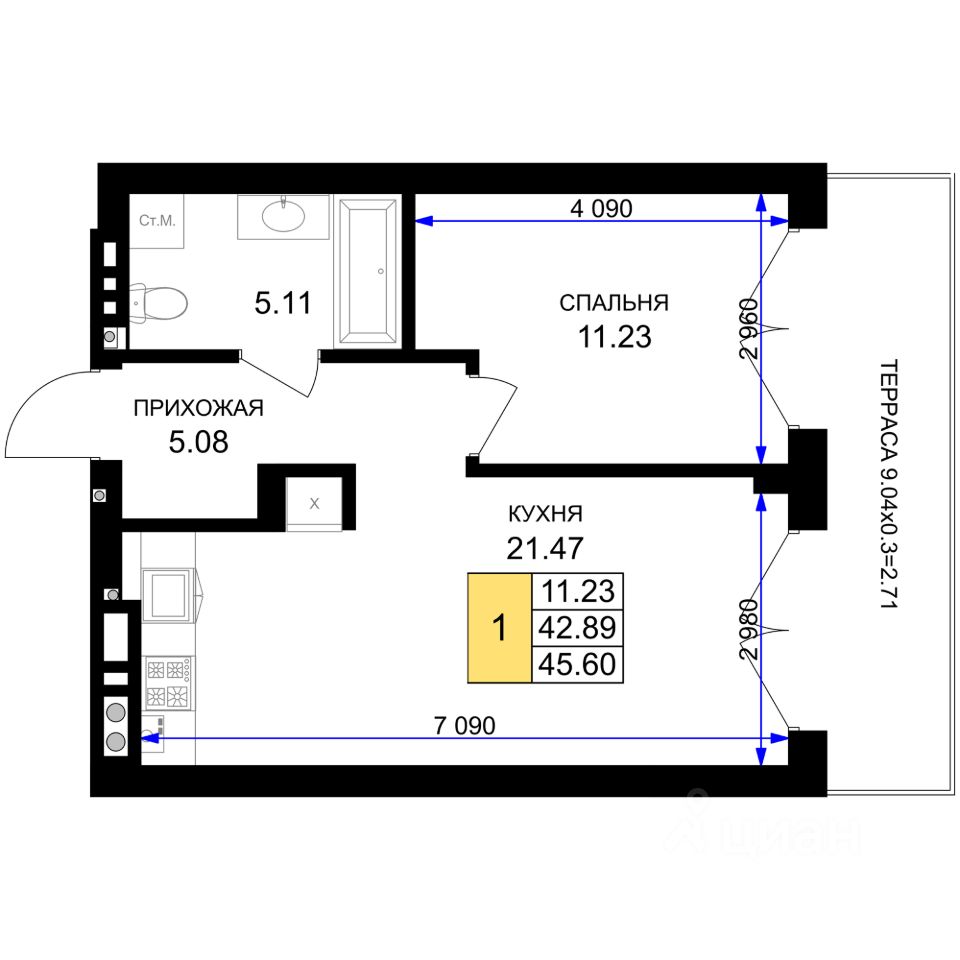 продам 1-к, Гурьевск9 192 960 ₽