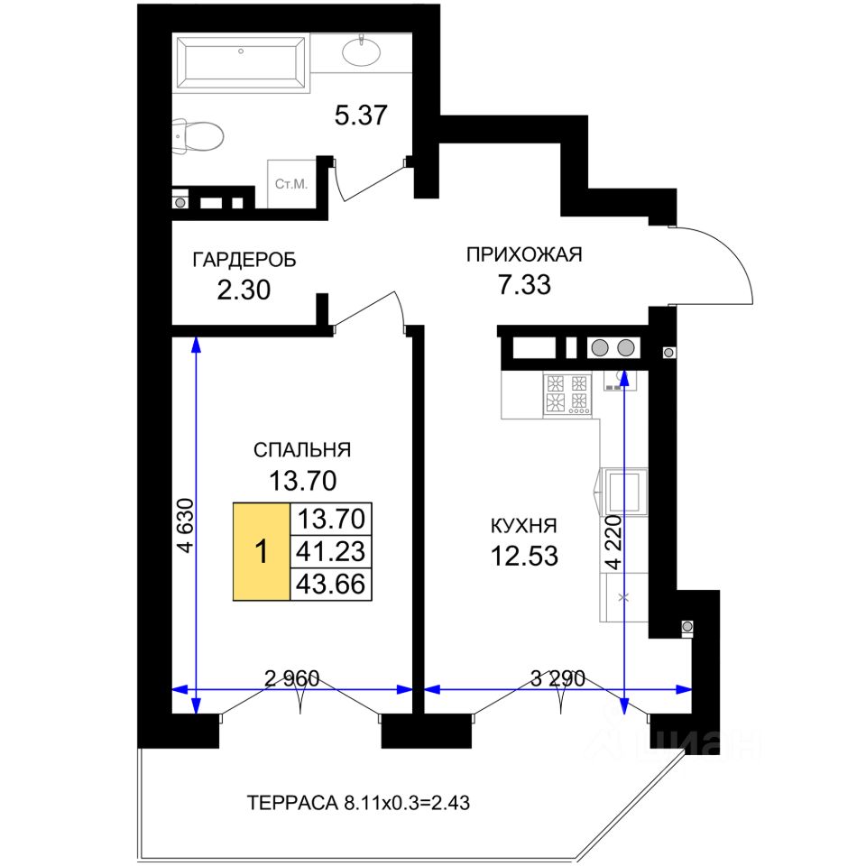 Однокомнатная квартира — это гармоничное сочетание современной планировки, естественного света и продуманной функциональности. Пространство легко зонируется на спальную и гостиную зоны, а просторная кухня с возможностью размещения полноценной обеденной группы становится центром домашнего уюта и встреч с близкими. Лоджия, выходящая из жилой зоны, расширяет полезную площадь: здесь можно организовать рабочий уголок, мини-оранжерею или уютное место для отдыха с чашкой кофе утром.