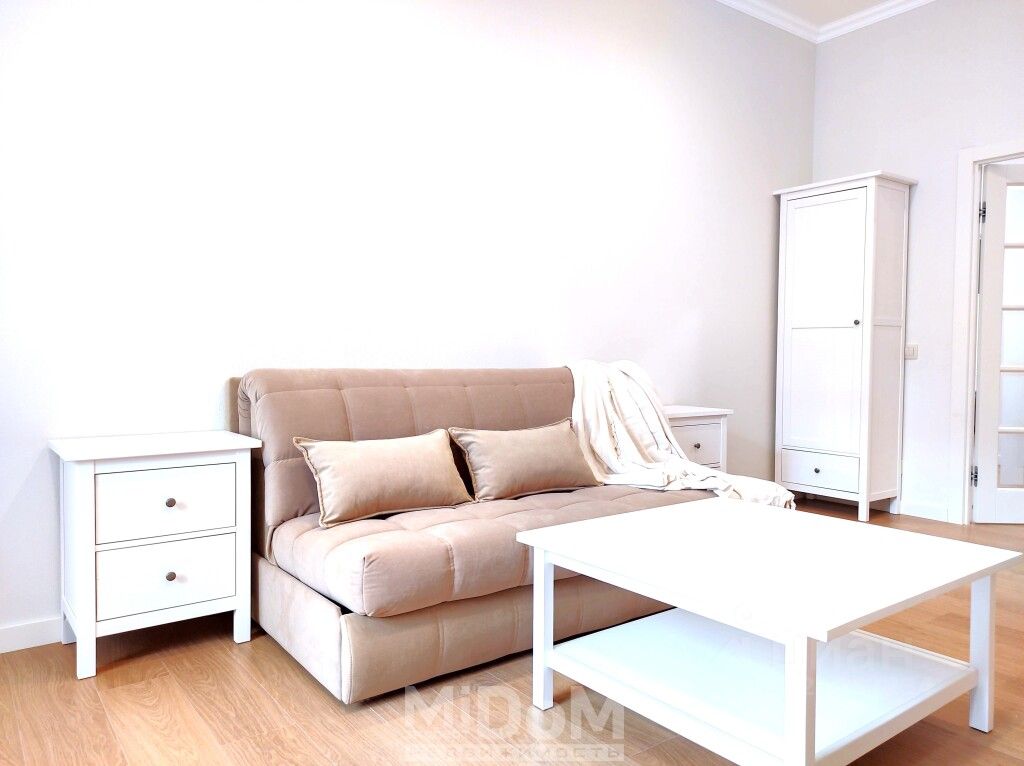 В квартире много света и воздуха высокие потолки 3 метра, увеличенные окна и светлая отделка создают особую атмосферу Дома. Изюминкой квартиры стали спальные места размера King Size - широчайший диван типа аккордеон с ортопедическим матрасом раздвигается в спальное место шириной 190 см, а днем одним движением руки складывается для удобного сидения.