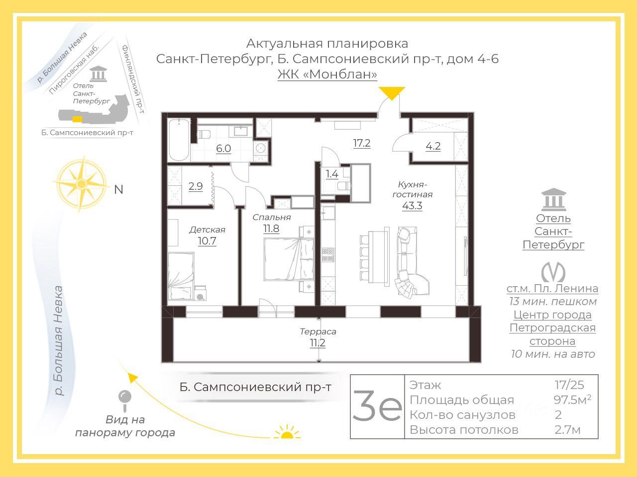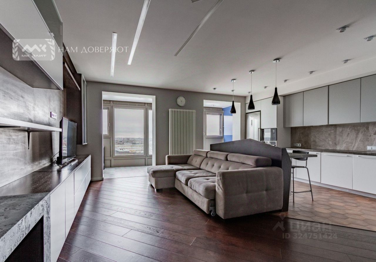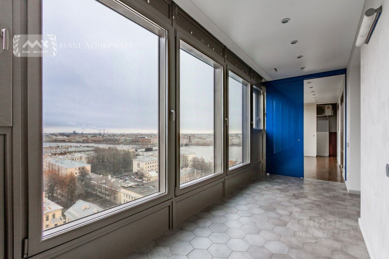 В квaртиpе большая кухня-гостиная, площадью 43 метра, которая станет местом притяжения и сбора всей семьи и друзей. Два санузла, две гардеробные и отлично организованные места хранения. Жилая зона состоит из 2-х спален. Всю квартиру объединяет огромная лоджия, с которой открывается панорамный вид на Неву, крыши, Смольный собор, парки и мосты.