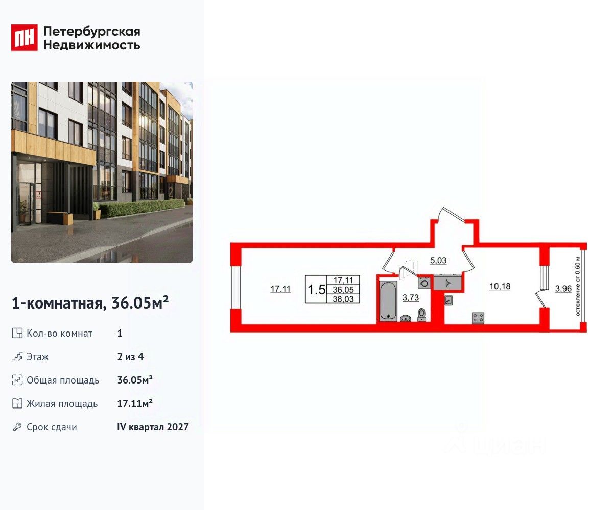 Общая площадь36,05 м2