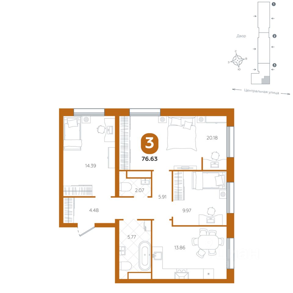 Два раздельных санузла — обеспечивают дополнительный комфорт, но и избавляют от утренней суеты.