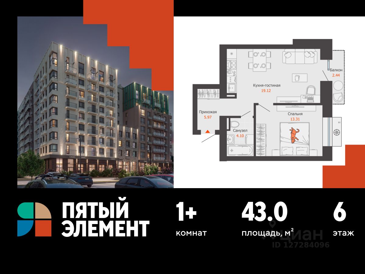 Продается 1-комнатная квартира в развитом районе Перми, площадью 43.00 кв. м. Квартира находится в новом жилом комплексе ''Пятый Элемент'' от федерального застройщика ''Железно''.