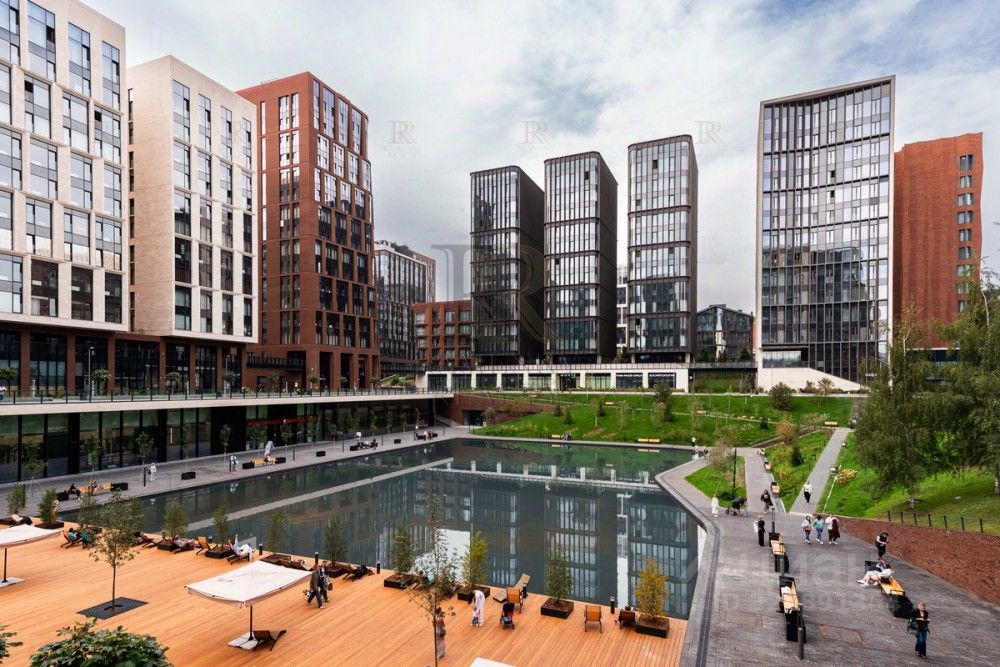 Вид открывается на центральную зону с прудом и 4-й квартал жилого комплекса.