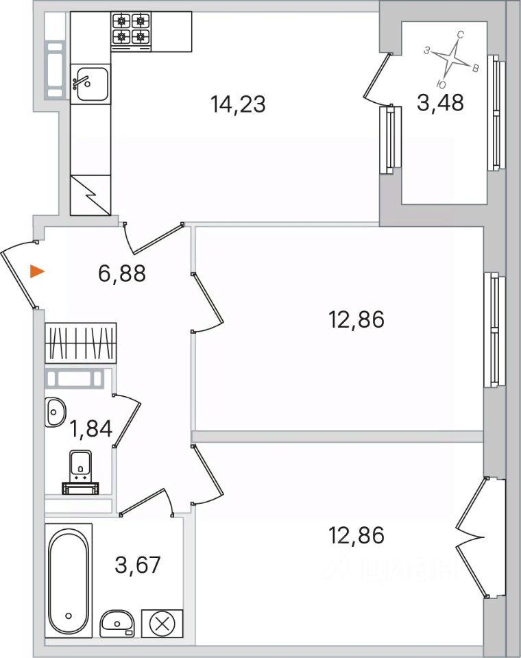 продам 2-к квартира14 617 463 ₽