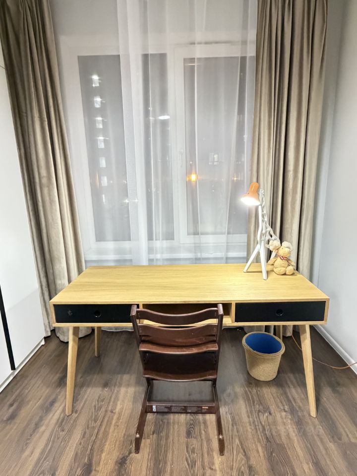 Кухня площадью 10 м² оборудована всей необходимой техникой: холодильник, плита, микроволновая печь и посудомоечная машина. Из мебели — стильные шкафы и обеденный стол. В детской удобная двухъярусная кровать. Большой письменный стол и вместительный шкаф. Есть все необходимая утварь на кухне и для жизни. Чайник, тостер, кофеварка,пастельное белье, полотенца. Окна выходят в тихий двор. Никакого шума от дорог! Западная сторона. В квартире есть кабельное/цифровое ТВ. Для удобства жильцов предусмотрен грузовой и пассажирский лифты.