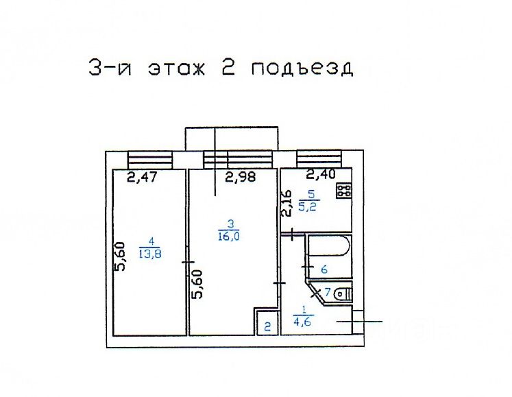 Этаж квapтиры - 3 из 4, Общая площадь кваpтиры - 43,3 кв.м. + остеклённый балкон - 2,3 кв.м., Плoщадь куxни - 5,2 кв.м., Плoщaдь смежных комнат - 16 и 13,8 кв.м., Прихожая с кладовкой - 5,2 кв.м., Санузел раздельный,